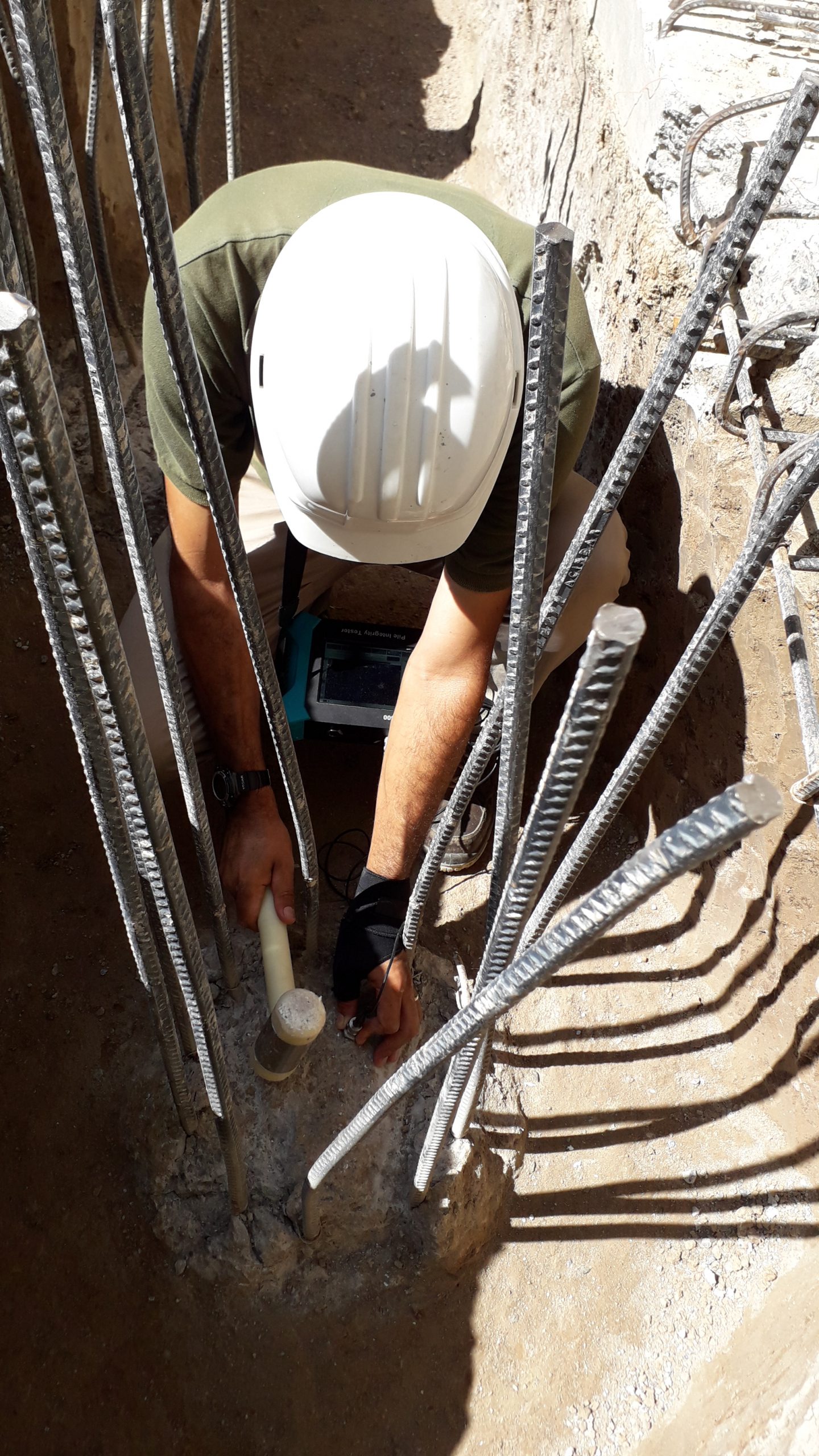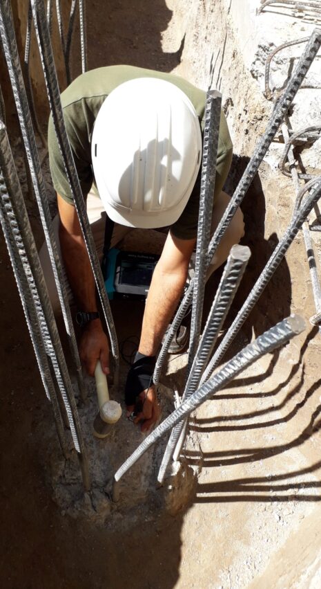 El método de ensayo sónico— o de martillo de mano —consiste en el análisis de la onda que se produce por el impacto en la cabeza del pilote.